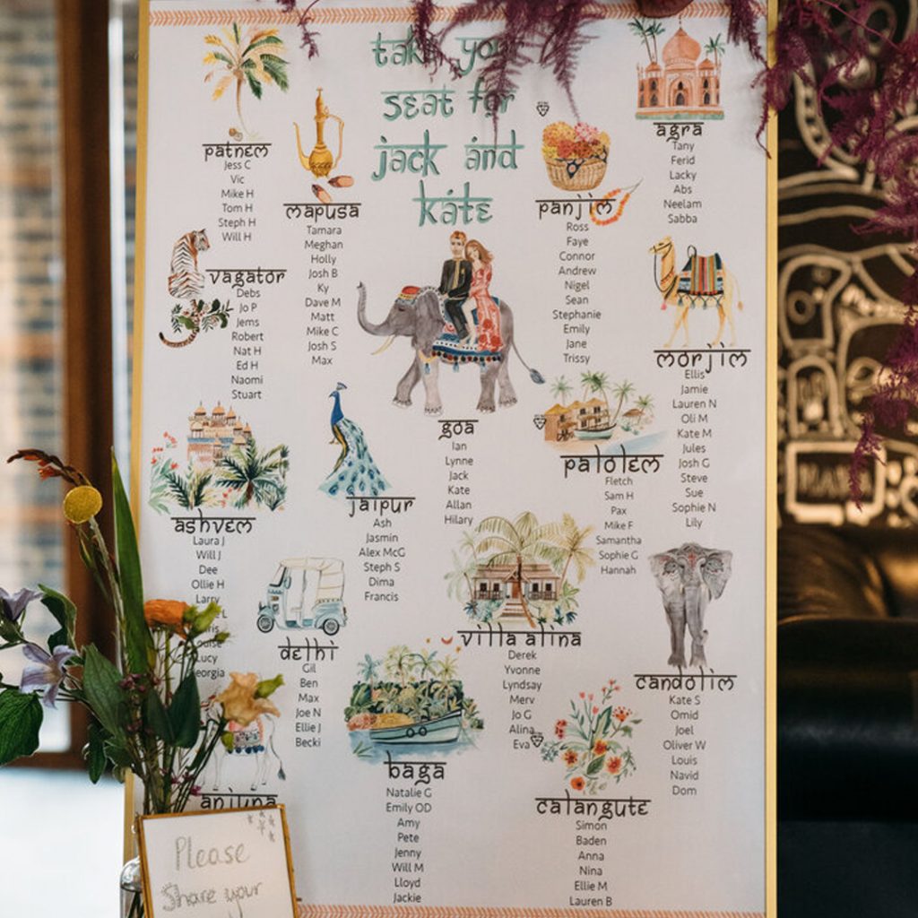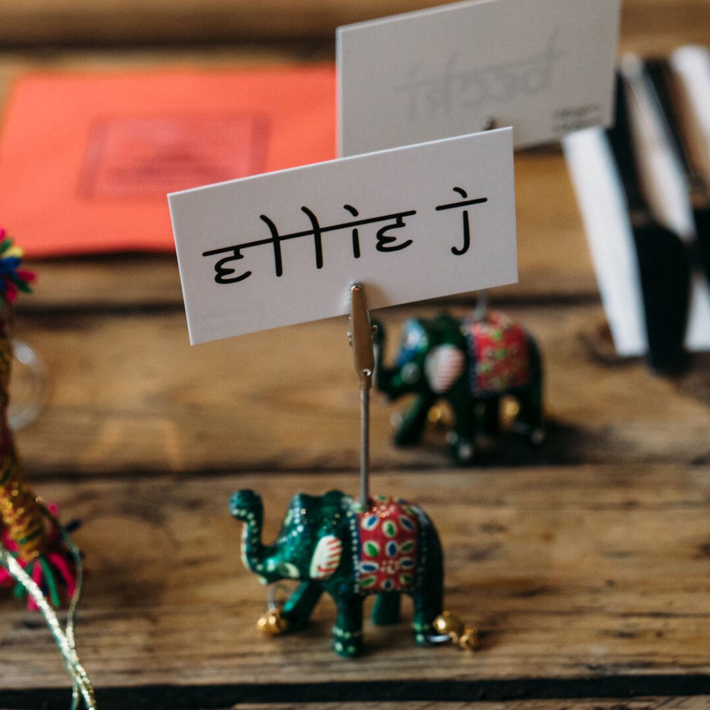 For an Indian-themed wedding, I was asked to create a bespoke font for all the name cards and table names.